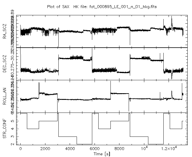 The figure gives an example of attitude reconstruction. Note the jumps in corrispondence of changes in the star tracker configuration.